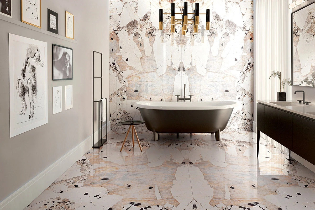 Die großformatigen rosafarbenen Feinsteinzeugfliesen Glacier von Epic Surface sind klassisch und zeitgenössisch zugleich und eignen sich hervorragend sowohl für Böden als auch Wandverkleidungen, für Räume mit modernem Design, eleganter Atmosphäre und für alle Räumlichkeiten, in denen die große ästhetische Wirkung des natürlichen Elements hervorgehoben werden soll.
